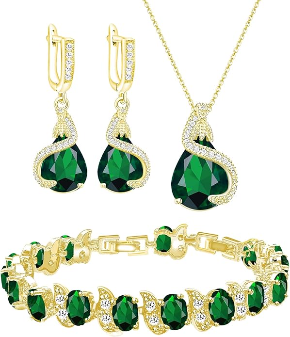 - ♥PERFECT MOTHER'S DAY GIFT♥:Green symbolizes love and kindness, and a green emerald gold jewelry set would be the perfect gift for mother on Mother's Day and birthday. It is suitable for wearing at weddings,prom,ball,party. It will be delivered in a gift box, give it to your mother to express your love for her.