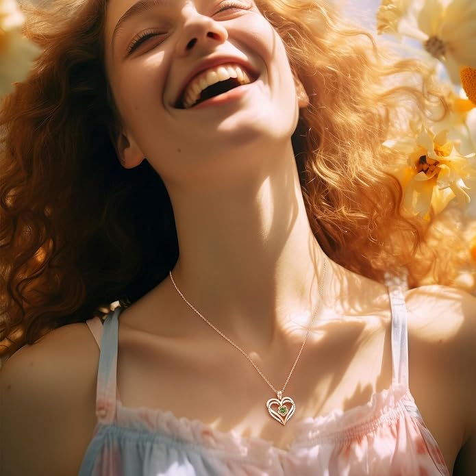 - ❤ Unique design: Double heart necklace with birthstone crystal - The infinite love heart pendant necklace is made of 925 sterling silver, plated with rhodium and rose gold, lead-free, nickel-free, hypoallergenic, and oxidation resistant.