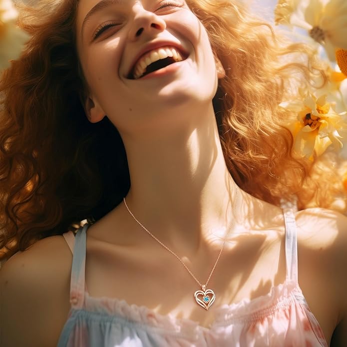 CDE S925 Silver Rose Gold Heart Birthstone Necklaces for Women,Ideal Anniversary or Birthday Jewelry Gifts for Wife Girlfriend Her