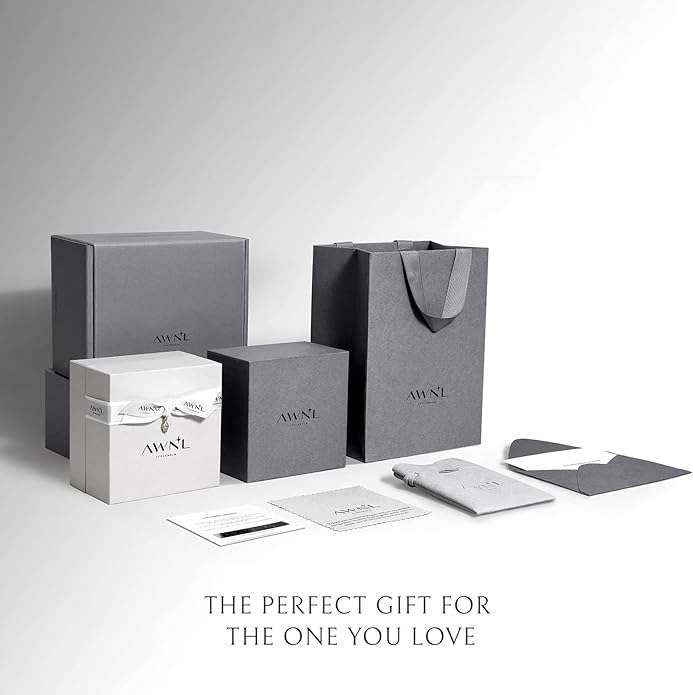 • Elegant Gift-Ready Packaging by AWNL: Each jewelry includes an elegant jewelry box, along with a soft polishing cloth, convenient storage pouch, and blank greeting card. Designed for effortless gifting, our carefully curated presentation enhances the special moment of giving and receiving.