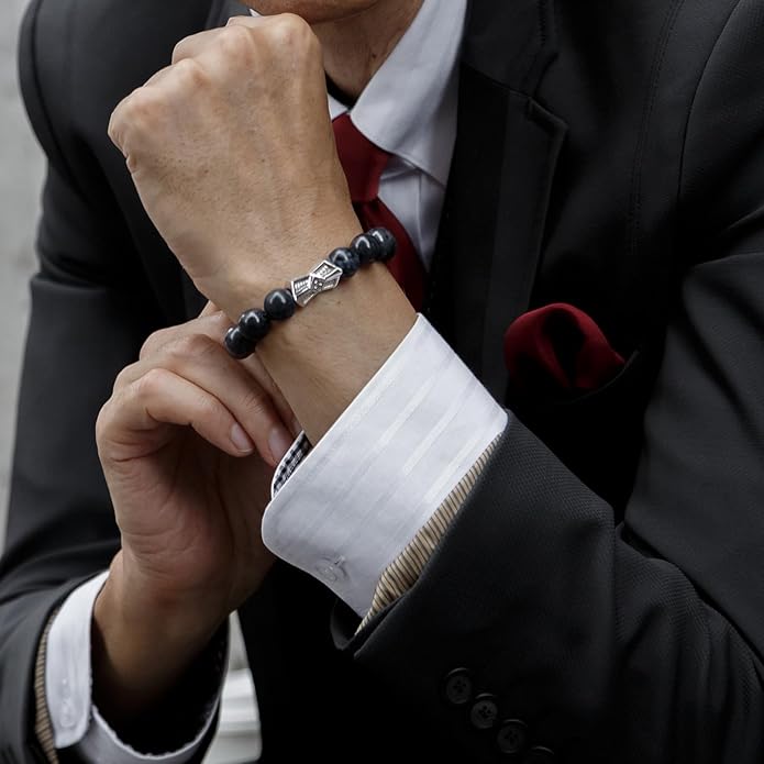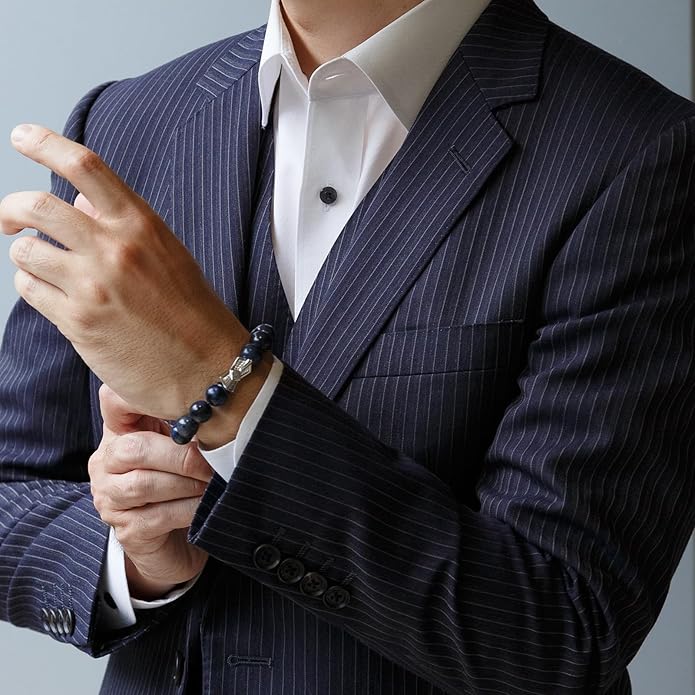 - Precision-Cut Gemstones: The men's beaded bracelet is crafted with 12 mm dumortierite stones, known for their rich blue color and powerful metaphysical properties. It is said to have a calming effect on emotions, helping to reduce stress, anxiety, and tension. It promotes emotional balance, inner peace, and a sense of serenity.