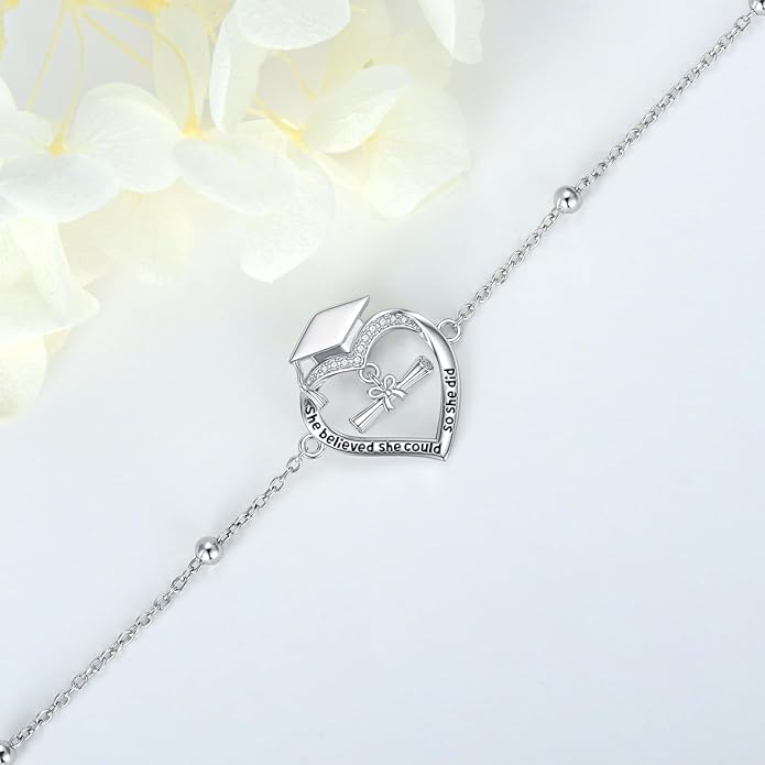 - 🎓Material: The graduation bracelet is made of S925 sterling silver, which is hypoallergenic, nickel free& lead-free, comfortable, and suitable for sensitive skin women.