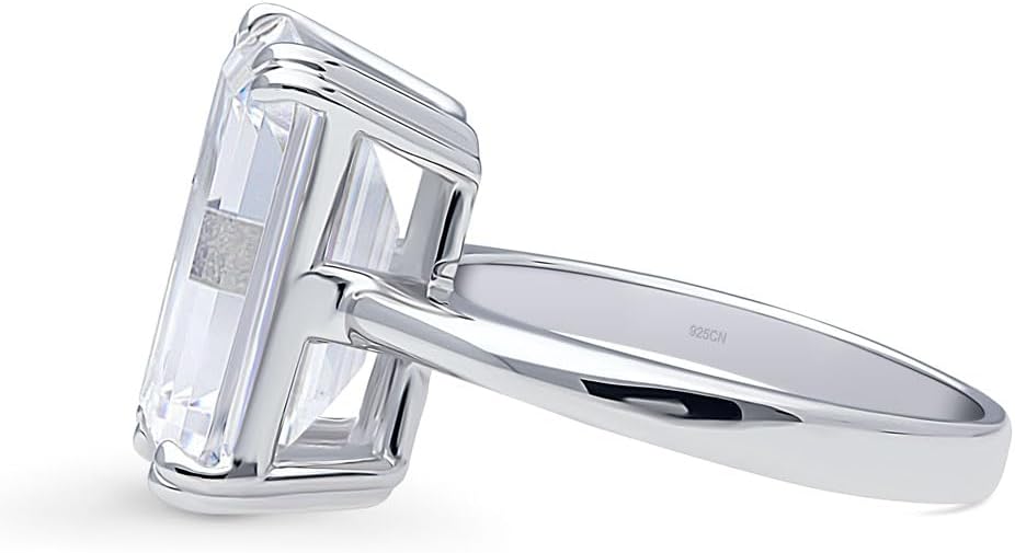 - NICKEL-FREE: Designed with your comfort in mind, safe for sensitive skin, won't turn your finger green. Features premium grade 8.5 carat emerald cut cubic zirconia CZ (14mm x 10mm). Measures 2.4mm band width, 7mm setting height.