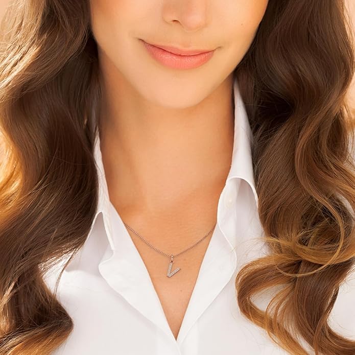- LETTER V INITIAL CHARM PENDANT - Wear a monogram necklace for a personal and unique jewelry piece. It's the perfect accessory to showcase your initial or the initial of a loved one, creating a connection to your identity or a cherished person in your life. Wear it solo or layer it with other necklaces for a personalized and stylish look. Pendant measures 0.62 x 0.37 inch.