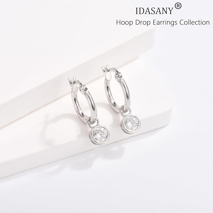 - Silver Hoop Drop Earrings: Sophisticated sterling silver hoop earrings with small round drop, sparkling cubic zirconia drop hoop earrings design symbolizes your elegance and noble, the best choice for all the perfect women's fashion jewellry