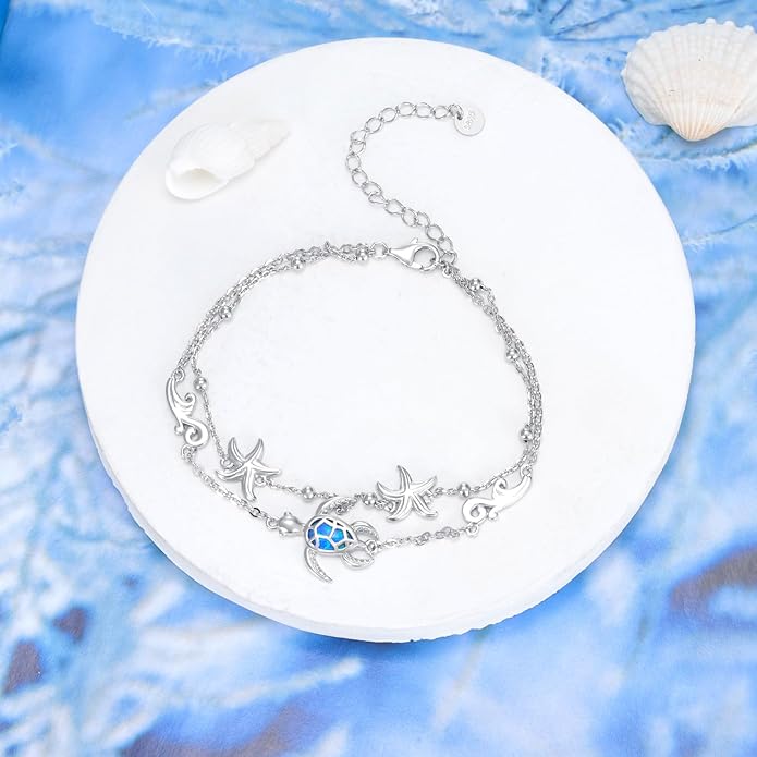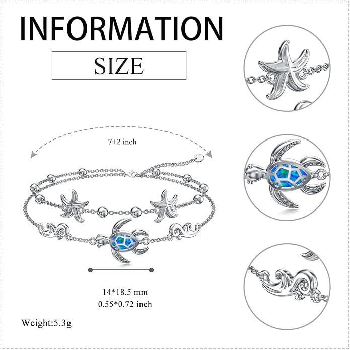 - Material: The sea turtle bracelet is made of S925 sterling silver with sparkle blue opal around it, the whole bracelet is hypoallergenic, it can be worn for a long time, suitable for people with sensitive skin, and makes you look radiant.