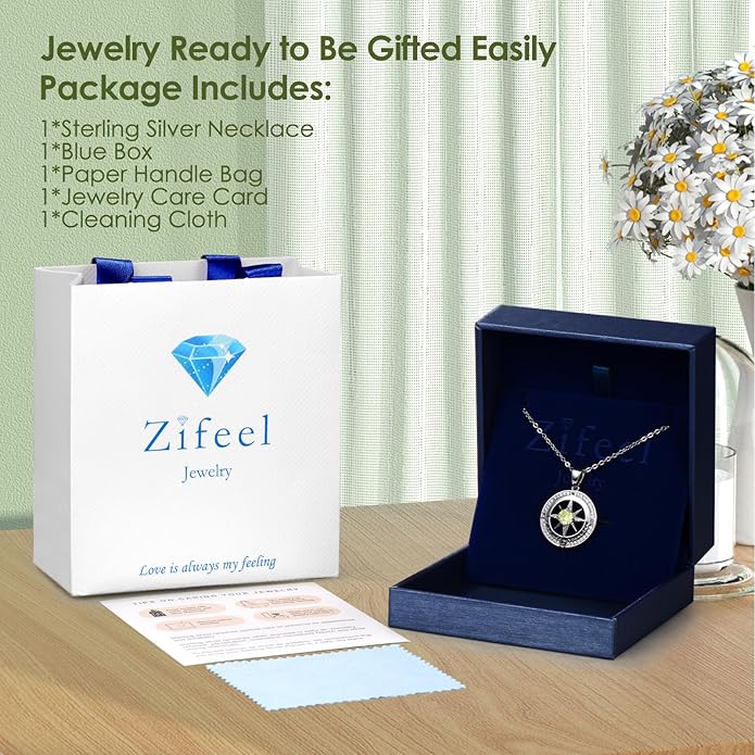Compass Necklace Gifts for Women wife - S925 Sterling Silver Birthstone Necklaces for Women - Anniversary Birthday Gifts for Her Wife Girlfriend - Valentines Mom Mothers Day Christmas Gifts Jewelry for Women