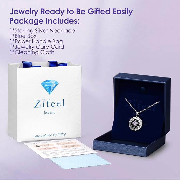 Compass Necklace Gifts for Women wife - S925 Sterling Silver Birthstone Necklaces for Women - Anniversary Birthday Gifts for Her Wife Girlfriend - Valentines Mom Mothers Day Christmas Gifts Jewelry for Women