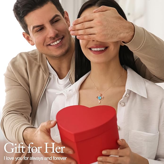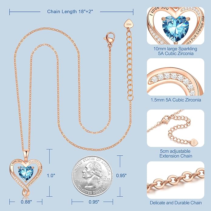 Birthday Gifts for Women Wife Infinity Heart Birthstone I Love You Necklace for Women S925 Sterling Silver Anniversary Wedding Gifts for Christmas Valentines Mothers Day Women's jewelry Diamond Pendant Necklaces Gift for Her Mom Daughter Grandma