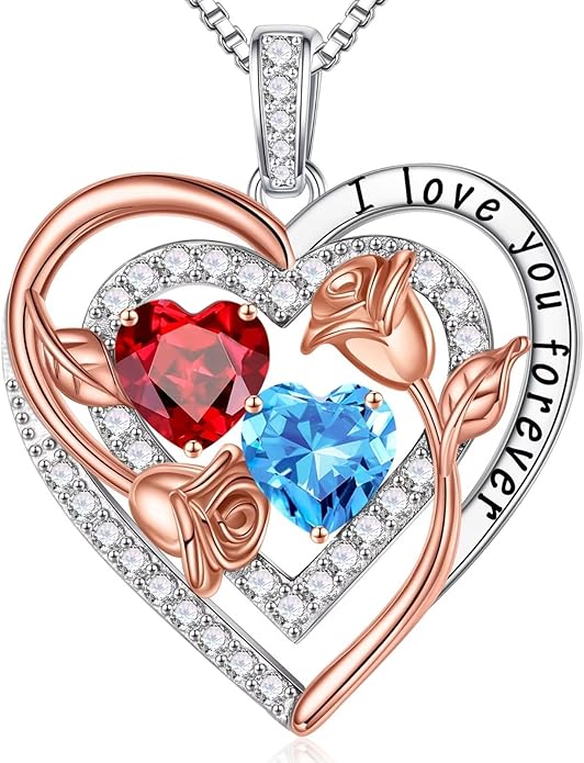 - UNIQUE GIFTS: The elaborate double birthstone necklace, one representing your birth month and one representing hers, represents the two of you forever tightly held together. Unique necklace send to the best women in your life and let her know how much she means to you. This birthstone necklace, a perfect gift for your love on Christmas, Anniversary and Birthday.