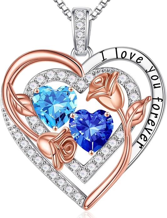 - UNIQUE GIFTS: The elaborate double birthstone necklace, one representing your birth month and one representing hers, represents the two of you forever tightly held together. Unique necklace send to the best women in your life and let her know how much she means to you. This birthstone necklace, a perfect gift for your love on Christmas, Anniversary and Birthday.