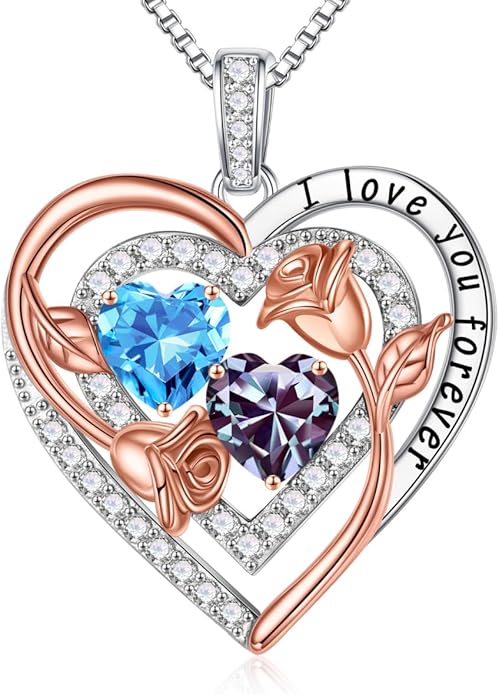 - UNIQUE GIFTS: The elaborate double birthstone necklace, one representing your birth month and one representing hers, represents the two of you forever tightly held together. Unique necklace send to the best women in your life and let her know how much she means to you. This birthstone necklace, a perfect gift for your love on Christmas, Anniversary and Birthday.