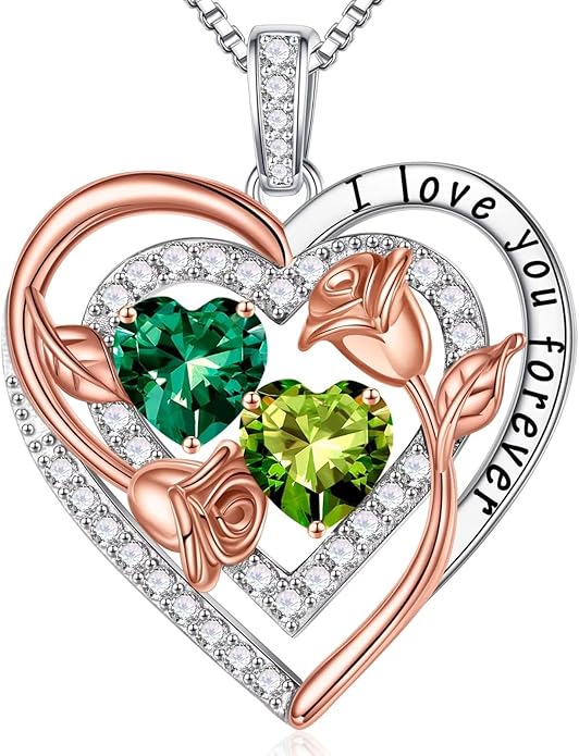 - UNIQUE GIFTS: The elaborate double birthstone necklace, one representing your birth month and one representing hers, represents the two of you forever tightly held together. Unique necklace send to the best women in your life and let her know how much she means to you. This birthstone necklace, a perfect gift for your love on Christmas, Anniversary and Birthday.
