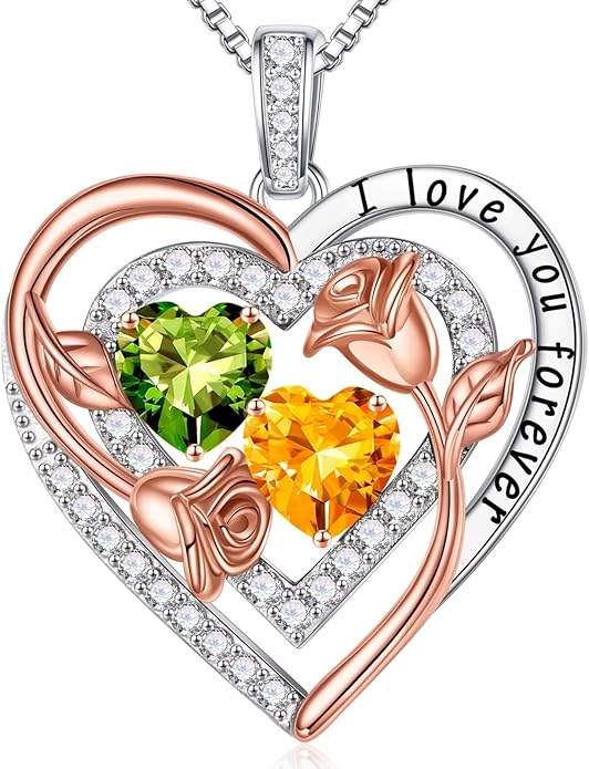 - UNIQUE GIFTS: The elaborate double birthstone necklace, one representing your birth month and one representing hers, represents the two of you forever tightly held together. Unique necklace send to the best women in your life and let her know how much she means to you. This birthstone necklace, a perfect gift for your love on Christmas, Anniversary and Birthday.