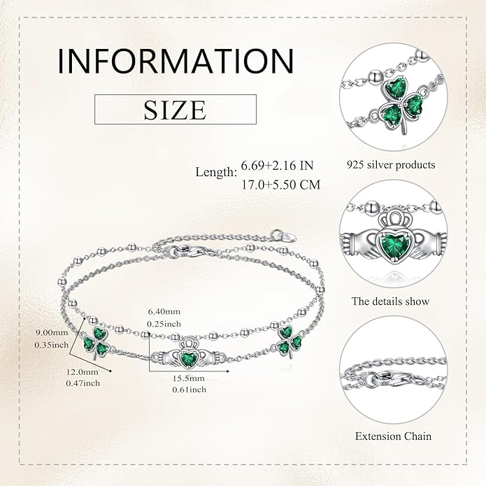 - Irish Bracelet Size: Adjustable 7+2 inches plus extension chain. Weight: 3.47g. Lightweight to wear, always be charming and eye-catching.
