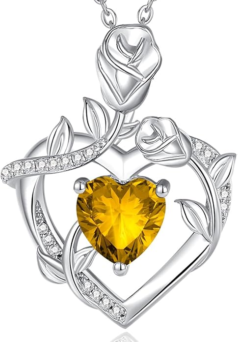 - đź’•Citrine Heart Necklace:đź’• The necklace is made up of sterling silver and plated with white gold, and the pendant is set a November Birthstone - Citrine. Chain length is 18"+2" (adjustable chain fits for most female), the heart pendant size is 0.9"*1.1" (21MM*27MM), Weight: 7g