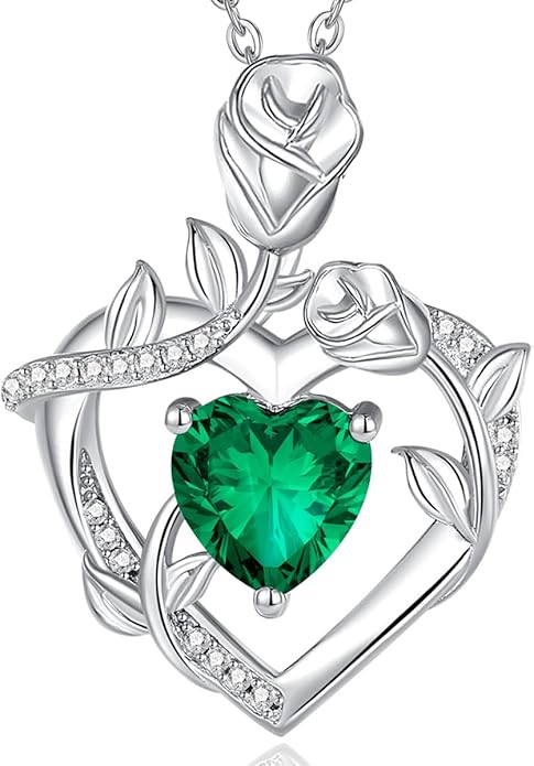 - đź’•Emerald Heart Necklace:đź’• The necklace is made up of sterling silver and plated with white gold, and the pendant is set a May Birthstone - Emerald. Chain length is 18"+2" (adjustable chain fits for most female), the heart pendant size is 0.9"*1.1" (21MM*27MM), Weight: 7g