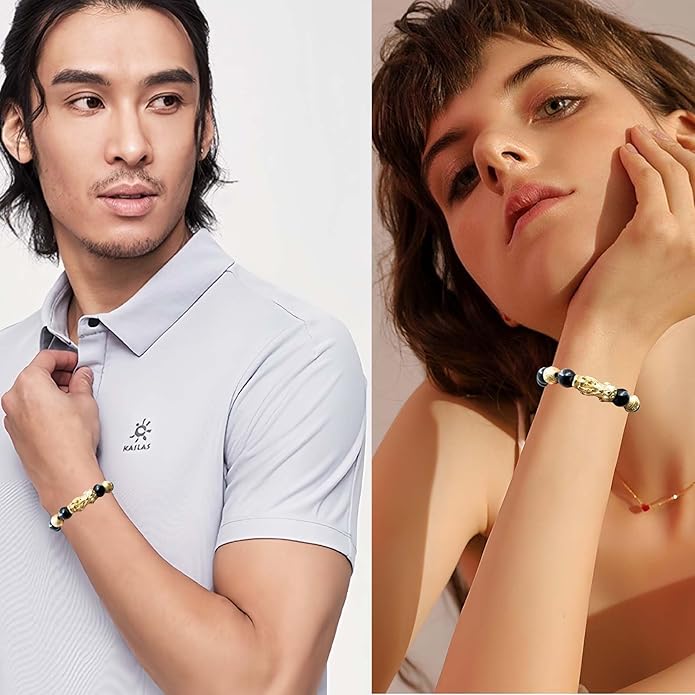 - Craftsmanship: The obsidian pixiu bracelet is carefully handmade by master craftsmen. The dragon braceletโs gold beads and gold pixiu use 24K gold sanding process and vacuum high-pressure high-temperature plating, never fade, carved exquisite runes, matched with natural colored eyes obsidian, the bracelet combines lean craftsmanship and excellent quality.