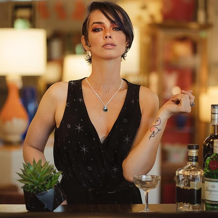 - Black pearl necklace pendant is made of 18K Gold Plated 925 sterling silver,Electroplating three layers whose silver part is not oxidized easily, remaining radiant, use Imported Eight stars and eight arrows AAAA Cubic Zirconia. Nonnyl Tahitian Black Pearl Pendant Necklace 9-10mm Round Women Silver Necklace Women's Pendant,matching a free 18 inches cable chain.
