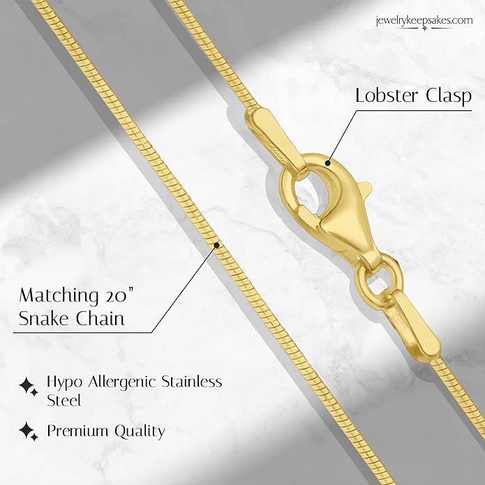 - ✔ Modern Style: Your pendant is available in either silver and gold and comes with an elongated drop bail to enhance the visual appearance of the necklace. We also include a 20" matching snake chain with a lobster clasp.