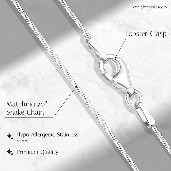 - ✔ Modern Style: Your pendant is available in either silver and gold and comes with an elongated drop bail to enhance the visual appearance of the necklace. We also include a 20" matching snake chain with a lobster clasp.
