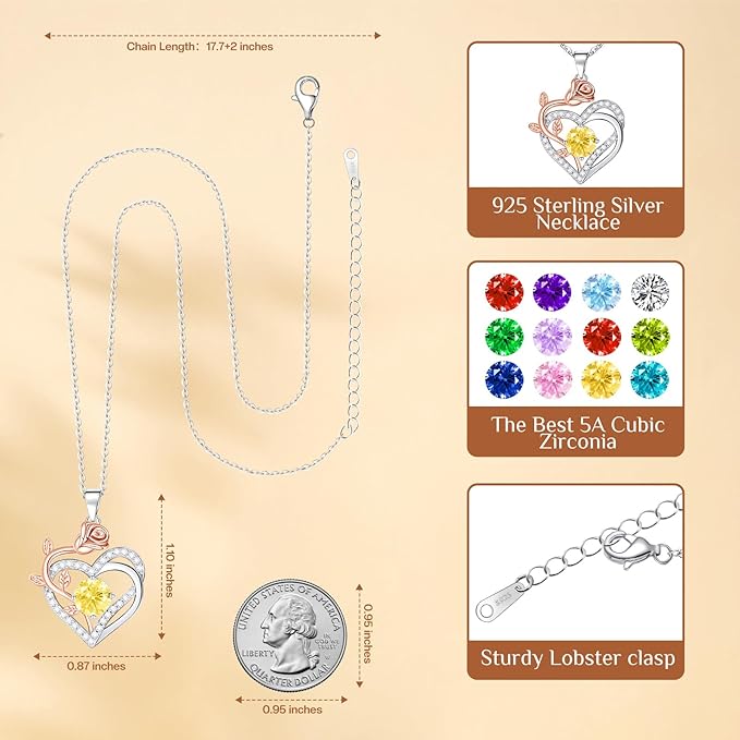 - 🌹Forever Rose Heart Necklace:The Birthstone Necklace Crafted in 925 sterling silver,Birthstones are available in a variety of colors, including clear, blue, pink, purple, yellow, green, and red. Birthstone of your choice, representing your month of birth. It's hypoallergenic, making it safe for sensitive skin, and comes with a complementary 18-inch chain. Whether you're looking for a gift for a loved one or a special piece for yourself, this necklace is sure to impress.