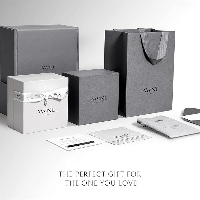 - Elegant Gift-Ready Packaging by AWNL: Each jewelry includes an elegant jewelry box, along with a soft polishing cloth, convenient storage pouch, and blank greeting card. Designed for effortless gifting, our carefully curated presentation enhances the special moment of giving and receiving.