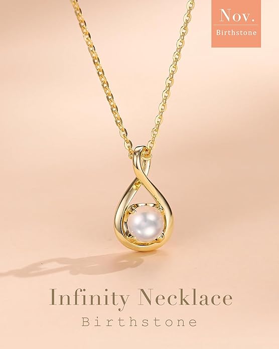 - ❤Pearl Jewelry❤This infinity birthstone necklace is designed with infinity symbols and inlaid with a round-shape pearl. Pearl is the June Birthstone, Represents health, longevity, prosperity and wealth.