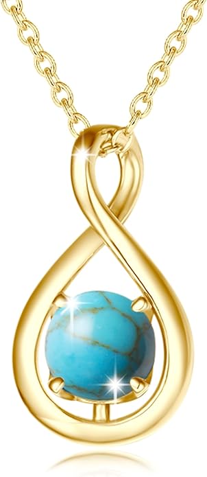 - ❤December Birthstone Jewelry❤ This infinity birthstone necklace is inlaid with stunning and shining created turquoise. Turquoise is the December birthstone, represents victory, good luck, and success. It also the stone given to celebrate the 11th wedding anniversary.