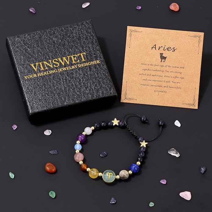 - 【Astrological Gifts】It’s always a good idea to give birthstone jewelry as a gift for a person born under the sign of Aries .The Aries crystal bracelet comes with a beautifully designed constellation card, packaged in a jewelry box, making it perfect as a gift for your families, friends, and loved ones on birthday, graduation, Valentine's Day, Mother's Day, Thanksgiving and Christmas.