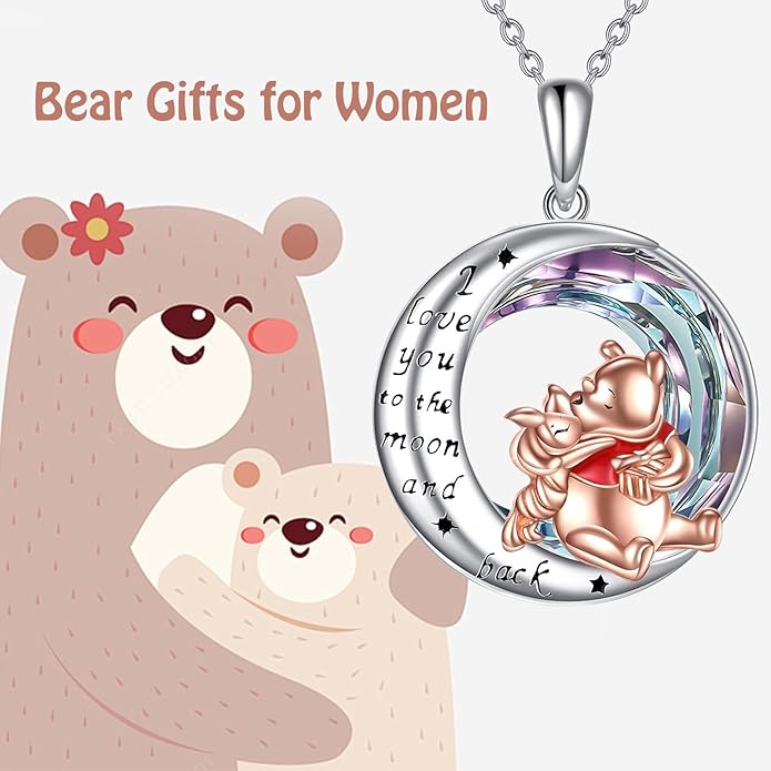 LILALO Bear Necklace Sterling Silver Moon Jewelry with I Love You To the Moon And Back Bear Gifts