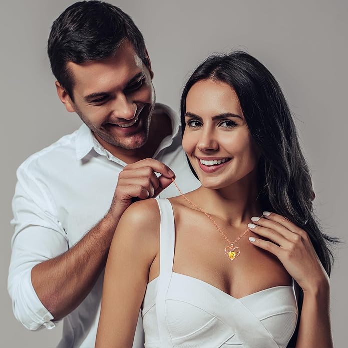 - Believe that this yellow heart shape birthstone pendant necklace can delicately draped over a dress, elegantly layered with a blouse, or boldly paired with a trench coat or sweater. Just have this love heart pendant necklaces in your wardrobe. Prepare to captivate every onlooker as you exude elegance and sophistication!