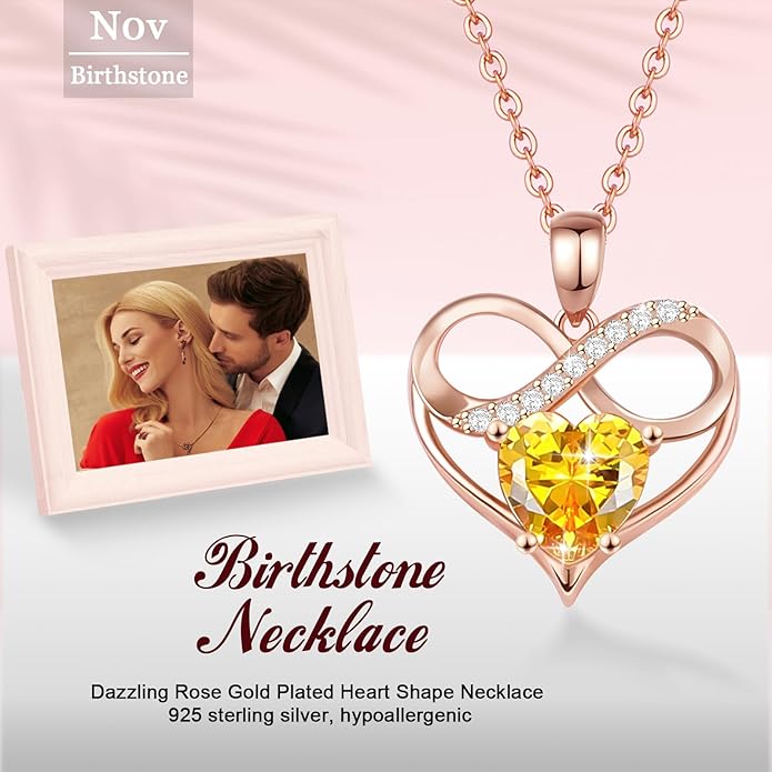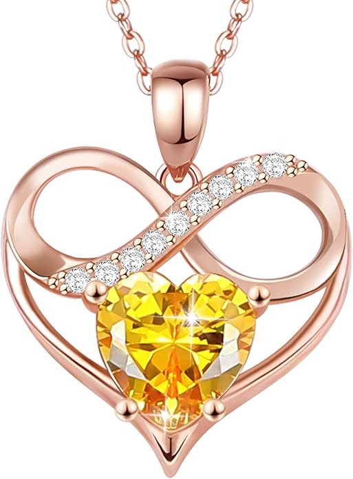 - A unique design mixed infinity and heart shape, make this heart birthstone necklace a unique jewelry gift for women. And Citrine is the birthstone of November, symbolizes wealth. So this November birthstone necklace for women is a perfect birthday gift for wife, mom, girlfriend and also a lovely friend birthday gift for women.