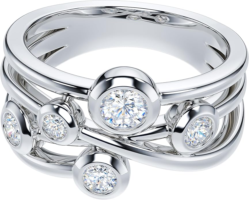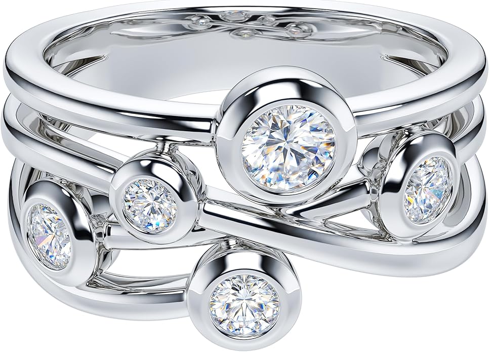 THELANDA Genuine Moissanite or Simulated Diamond Bubble Cocktail Split Interlaced Vine Shank Fashion Anniversary Promise Ring Wedding Band