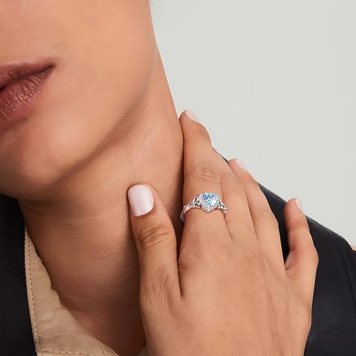 - Aquamarine Birthsone Rings for Women: This celtic knot heart ring are set by hand with a brilliant cut created aquamarine in the center and the D color VVS1 moissanites halo setting enhances the overall beauty and size of the center stone, creating a dazzling and luxurious look