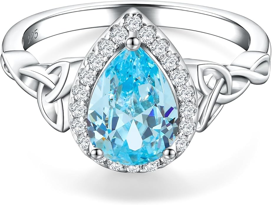 - Halo Gemstone Pear Cut Rings for Women: The light blue stone celtic knot ring delivered with small box, lucky irish jewelry to treat yourself as everyday ring and your loved one as engagement ring, promise ring, anniversary ring or even wedding rings