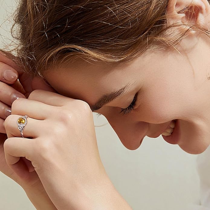 - Citrine Birthstone Rings for Women: This celtic knot round cut ring are set by hand with a brilliant cut created citrine in the center and the D color VVS1 moissanites halo setting enhances the overall beauty and size of the center stone, creating a dazzling and luxurious look