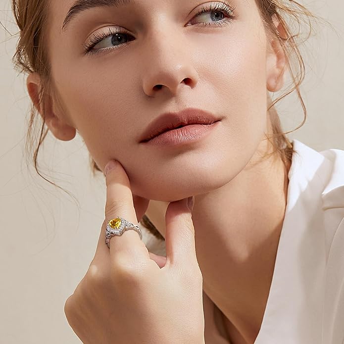 - Halo Gemstone Heart Rings for Women: The yellow stone celtic knot ring delivered with small box, lucky irish jewelry to treat yourself as everyday ring and your loved one as engagement ring, promise ring, anniversary ring or even wedding rings