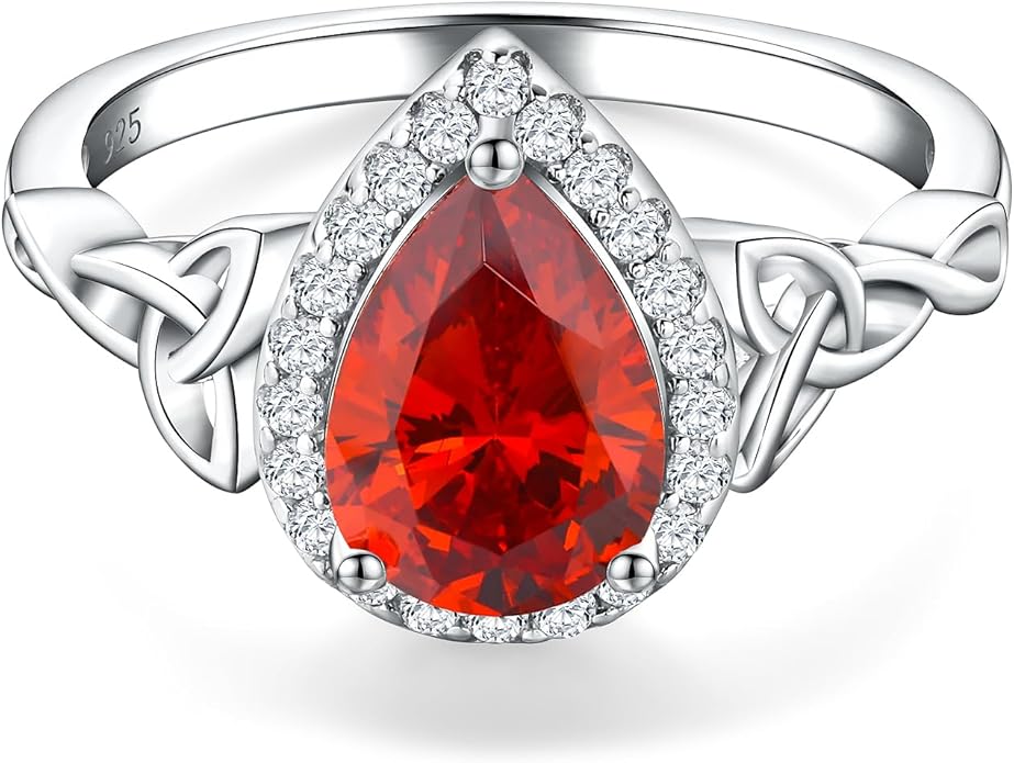 - Halo Gemstone Pear Cut Rings for Women: The red stone celtic knot ring delivered with small box, lucky irish jewelry to treat yourself as everyday ring and your loved one as engagement ring, promise ring, anniversary ring or even wedding rings