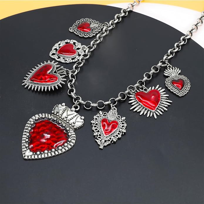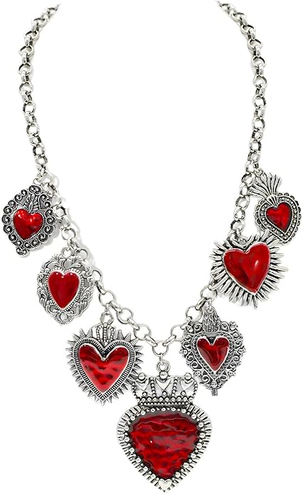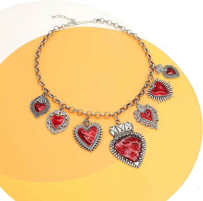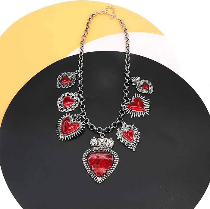 - Chunky Antique Heart Necklace: Big layers heart necklace with golden/silver chain, trendy retro style, antique Jewelry for women.