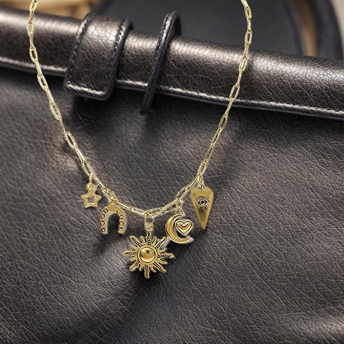 - iSPECIAL Golden Paperclip Charm Necklace For Women Cute Beach Ocean Moon Stars Western Themed Crystal Rhinestone Boho Charm Necklaces