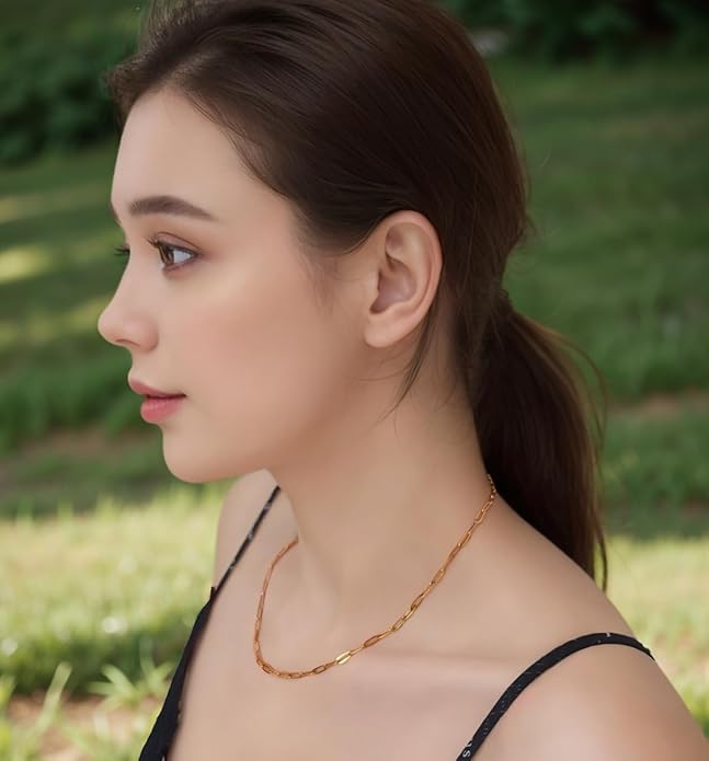 - Gold Paperclip Chain Necklace:This is 5pcs gold chains necklace bulk in one package,This Gold paperclip necklace for women length approx:18"+extender:2", Adjustable chain necklace for most women to wear.each paperclip size is 3x9mm.we have size 16inch,18inch,20inch,24inch gold paperclip chains bulk available for your choose.