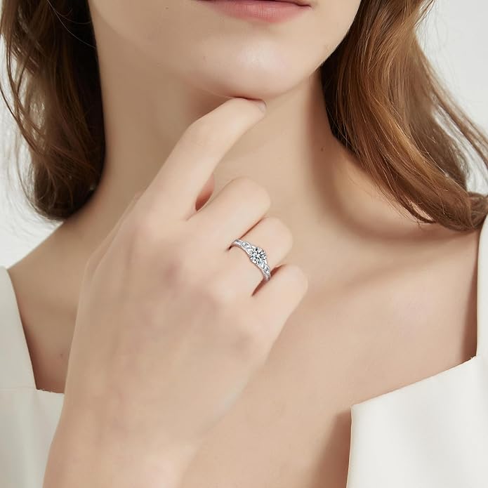 - 【Dazzling Focal Point】The centerpiece features a brilliant 6mm Round Cut Cubic Zirconia, meticulously in a secure prongting. Its radiant sparkle mimics the beauty of genuine diamonds, ensuring all eyes are on you as you embark on this romantic journey together.