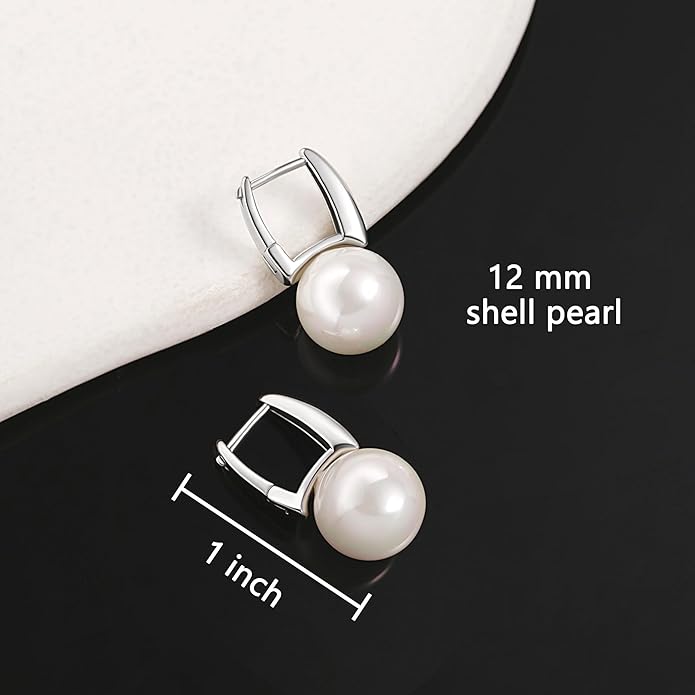- 2.DESIGN: The pearl drop earring features a barrel-like silver hoop on the top, which makes the whole pearl hoop earrings look chubby and cute. The barrel hoop also makes the simple silver earrings distinguished from other square hoop earrings. The 12mm round shell pearls of the silver hoop earrings are visible enough yet not too distracting.
