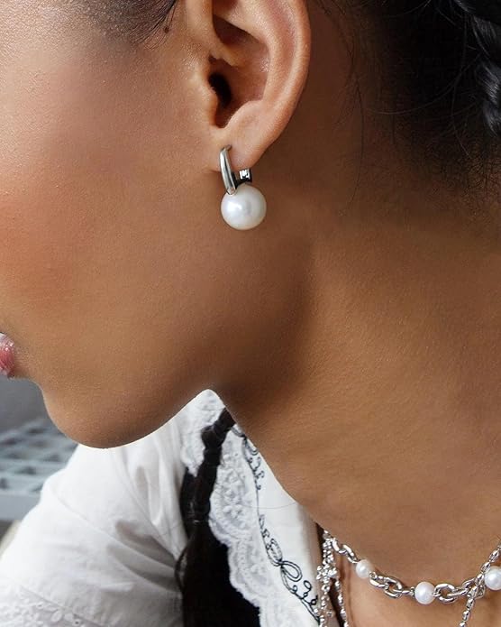 - 1.STYLE: Silver, with its sleek and versatile nature, is at the forefront of current fashion trends. Our silver pearl earrings seamlessly embody this trend, presenting simple yet dainty earrings designed to be easy to pair with other jewelry and apparel for a look that makes a modern but timeless statement.