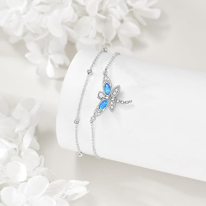 TIGER RIDER Dragonfly Anklet Sterling Silver Dragonfly Gifts Jewelry for Women with Crystal Birthday Anniversary