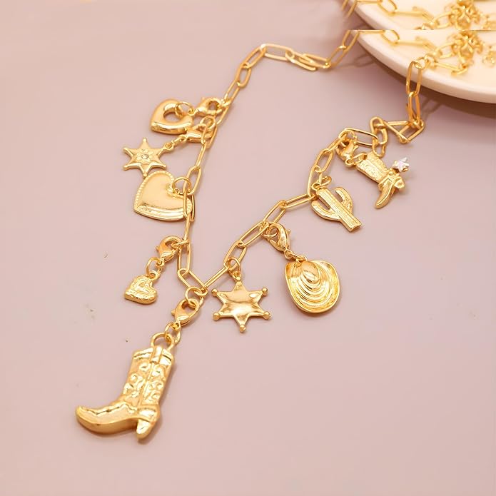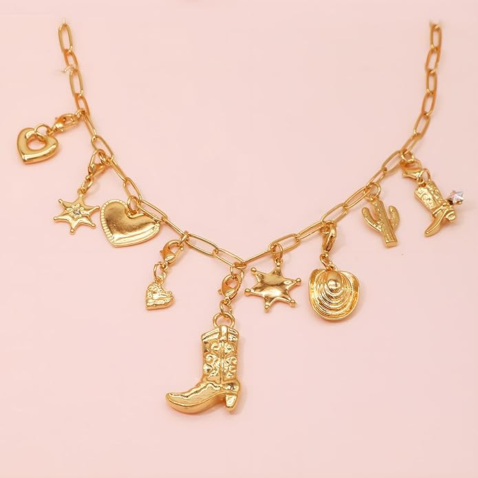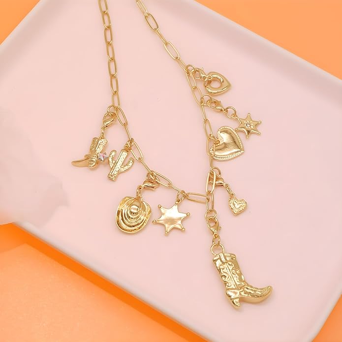 - iSPECIAL Golden Paperclip Charm Necklace For Women Cute Beach Ocean Moon Stars Western Themed Crystal Rhinestone Boho Charm Necklaces