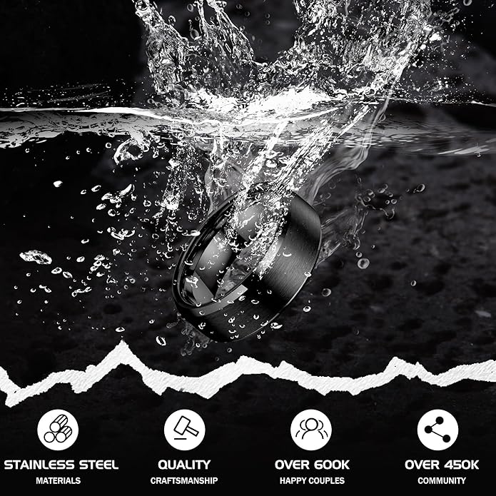 - 8MM Mens Rings: We found that 8mm rings are more comfortable and eye-catching than rings of other widths, and 8mm stainless steel rings are not easy to damaged. If you are looking for a solid ring, this ring will be a good choice for you