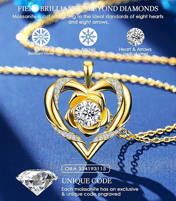 - Romantic Necklace for Her: Celebrate your love with our exquisite rose and heart pendant necklace, a timeless emblem of romance. Adorned with floral designs and sparkling moissanite, it's the perfect romantic anniversary idea for your special someone