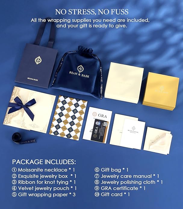 - Thoughtful Packaging: Every purchase includes a complete set—heart moissanite necklace, box, bag, wrapping paper, ribbon, tissue paper, and a message card—making it easy to create memorable moments